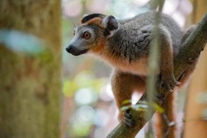 The crowned lemur is found only in the Ankarana Reserve in the rainforests of Montagne d’Ambre in the North of Madagascar.
